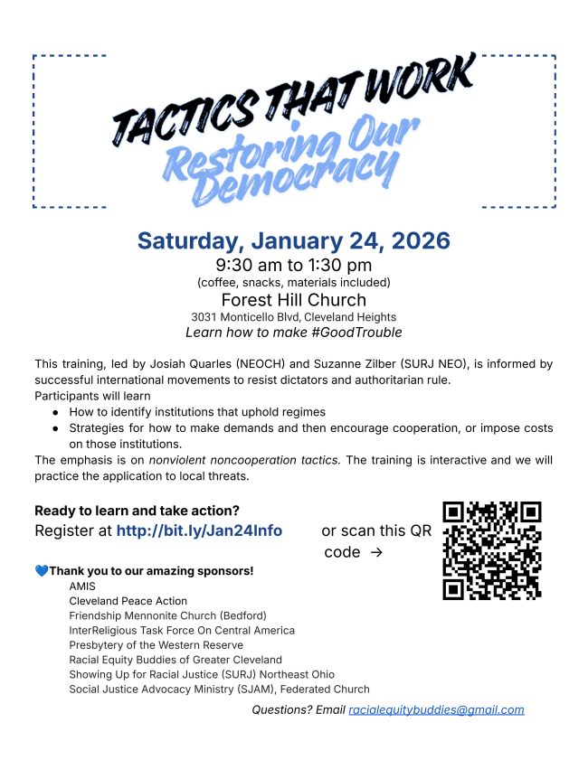 Suzanne Zilber from SURJ NEO and Josiah Quarles from Northeast Ohio Coalition for the Homeless will co-faciitate this event sponsored by Racial Equity Buddies.